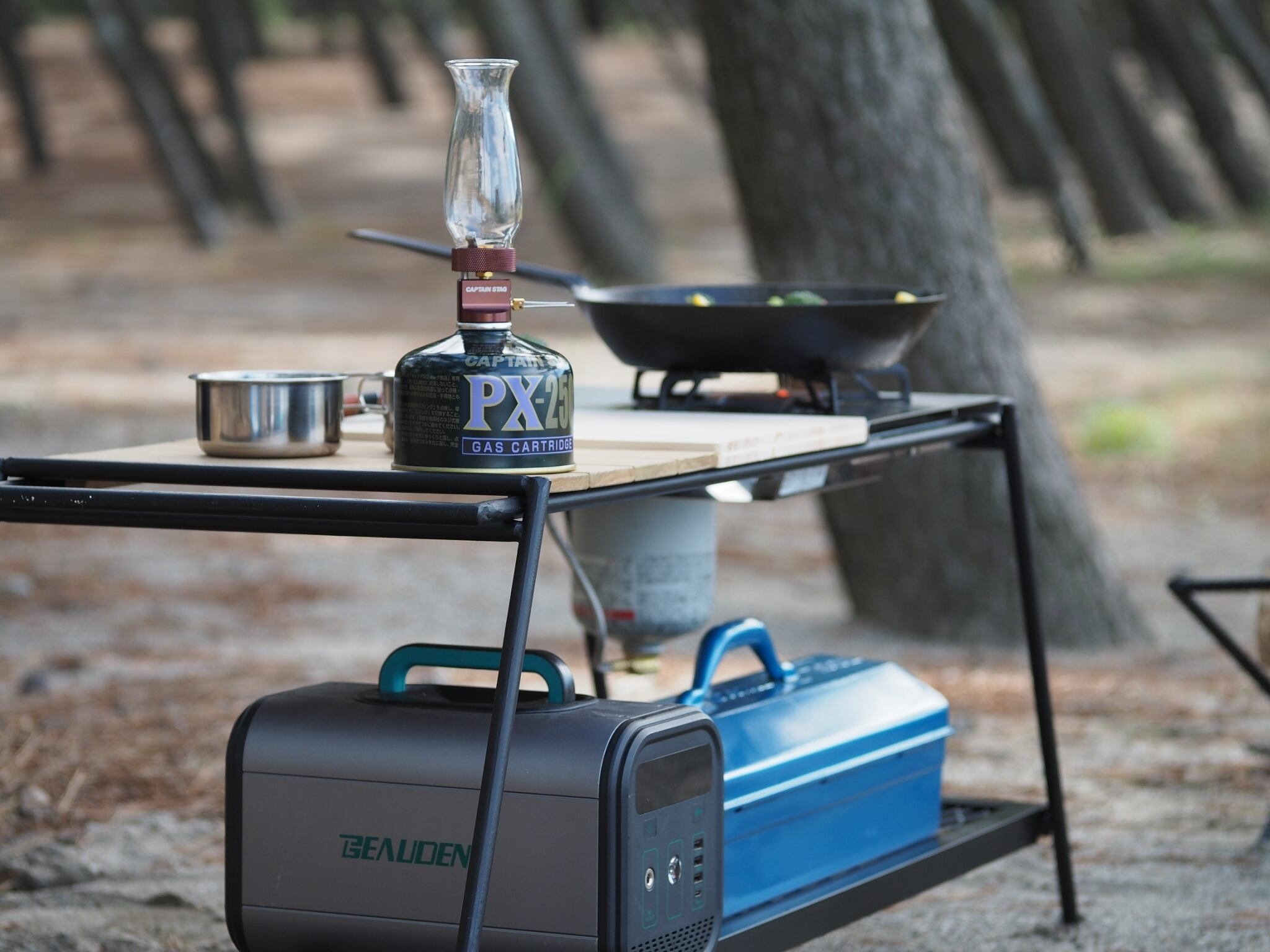 「アイアンテーブルだけだと収納力の弱さが目立ちます・・」